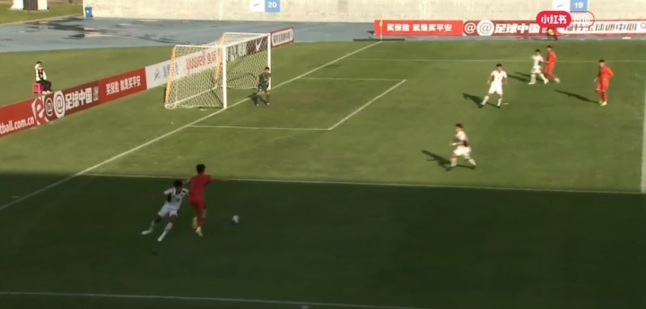 10月14日讯 热身赛U22国足vs泰国,下半场替补登场的王钰栋插上得球内切一步过,对手无奈上手犯规。
